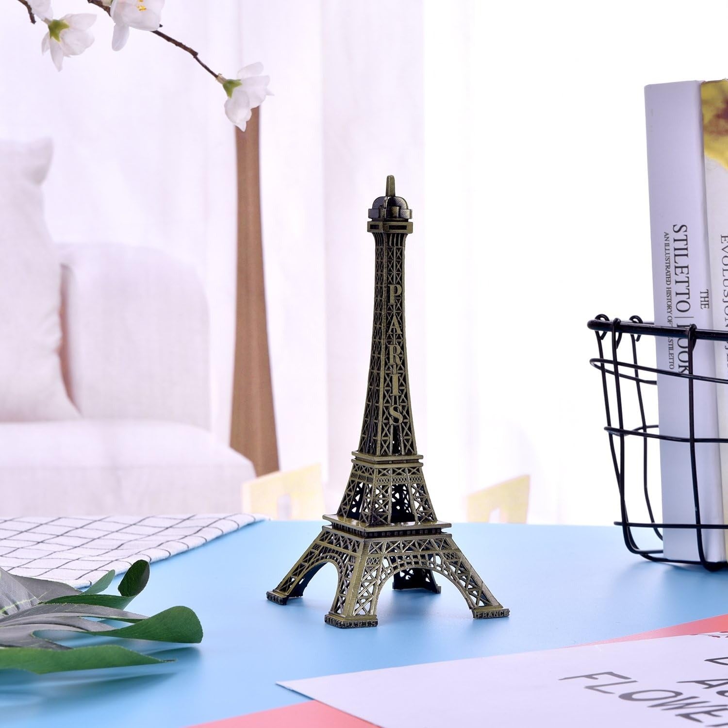 7-Inch Eiffel Tower Statue Home Decor | Bronze Alloy Metal Paris Landmark Model for Desk, Shelf & Gift