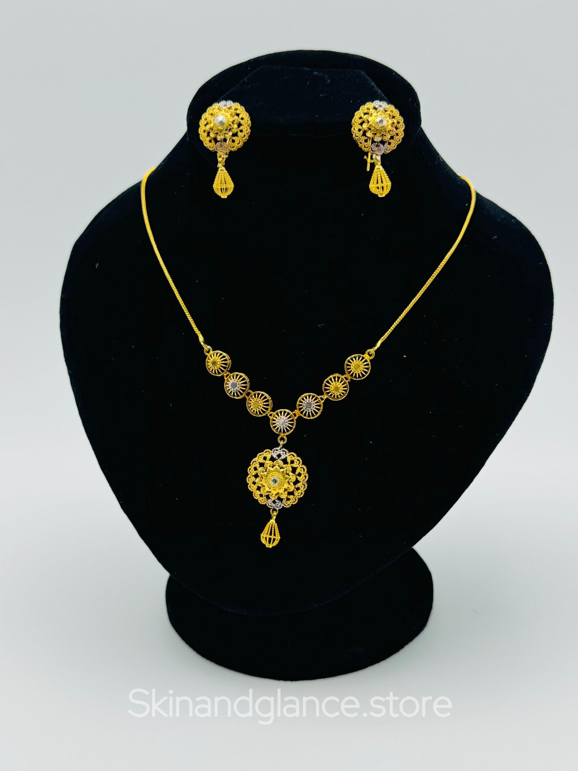 Cultural Turkish Necklace Ear Rings Set, 24 karat Gold Plated