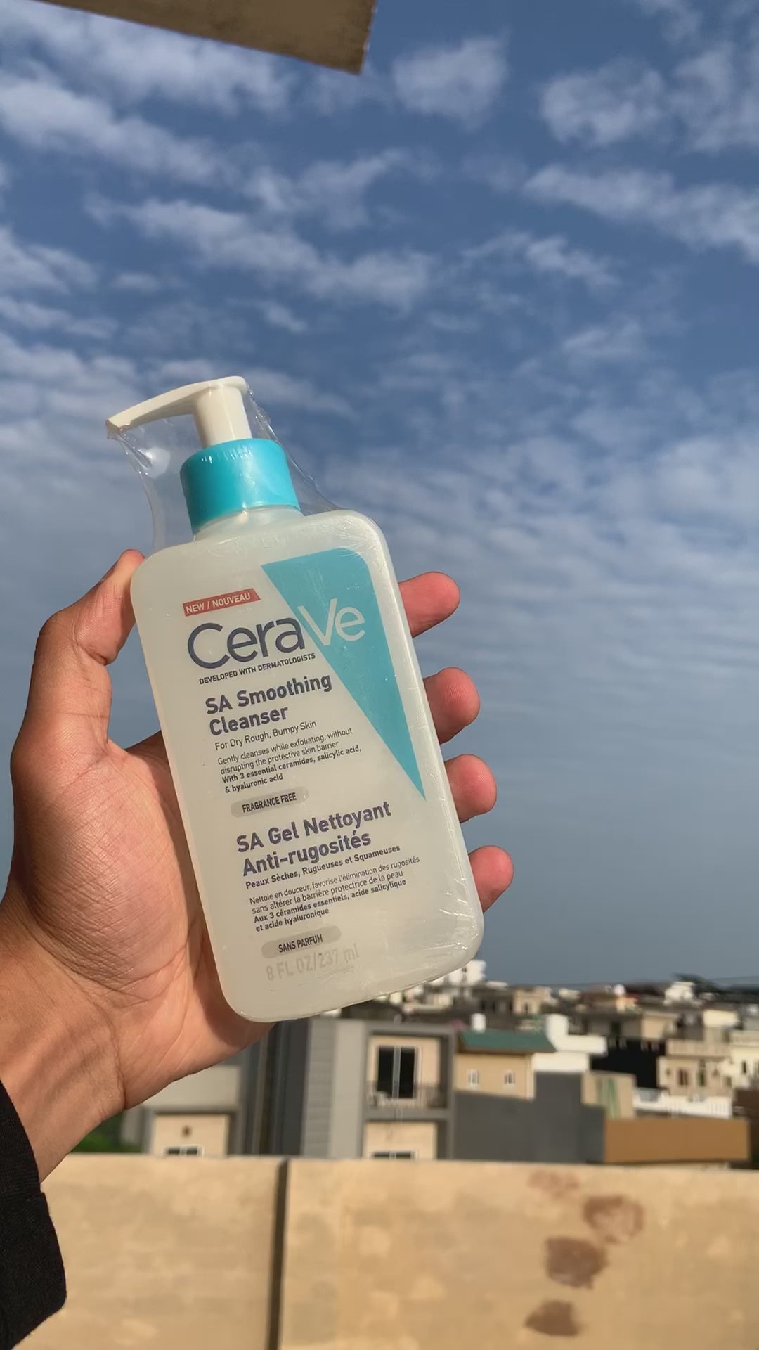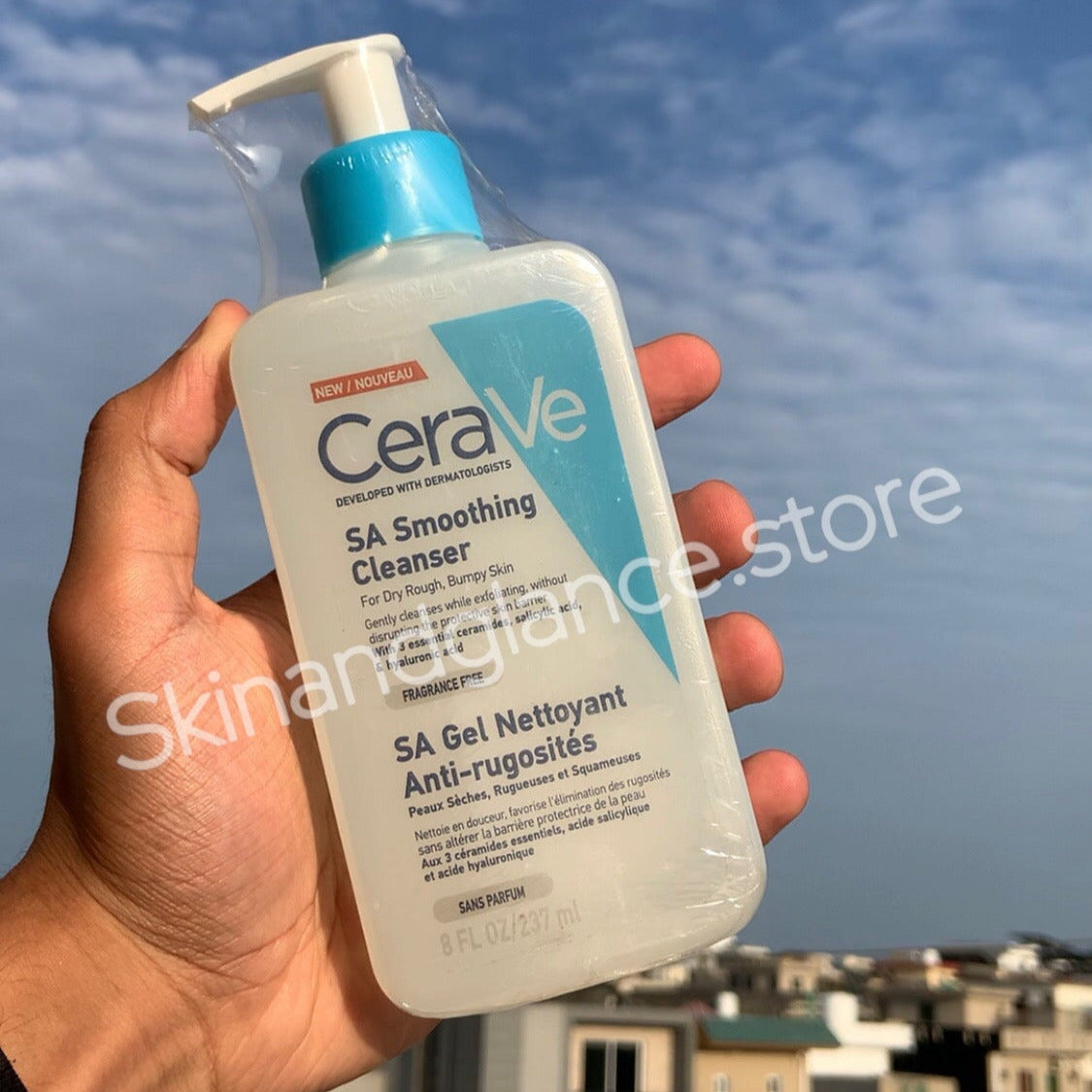 CeraVe SA Smoothing Cleanser is a gentle, non-foaming gel formula designed to exfoliate and cleanse rough, bumpy skin. Enriched with salicylic acid, ceramides, and hyaluronic acid, it helps remove dead skin cells, unclog pores, and restore the skin's natural barrier while providing lasting hydration. Fragrance-free and non-comedogenic, it's suitable for daily use on both face and body.