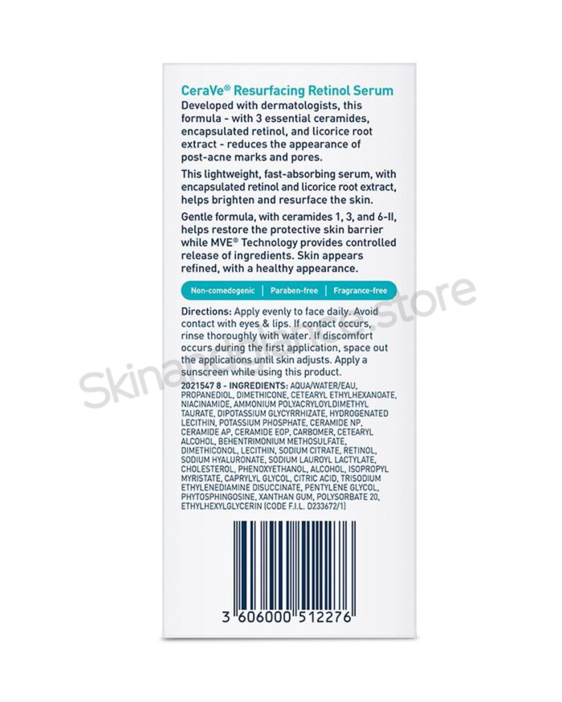 Retinol-Enhanced Resurfacing: The CeraVe Retinol Acid Serum contains a potent concentration of retinol, which promotes cell turnover and helps diminish the look of post-acne marks and fine lines. This powerful ingredient refines and smooths skin texture, revealing a more even complexion.