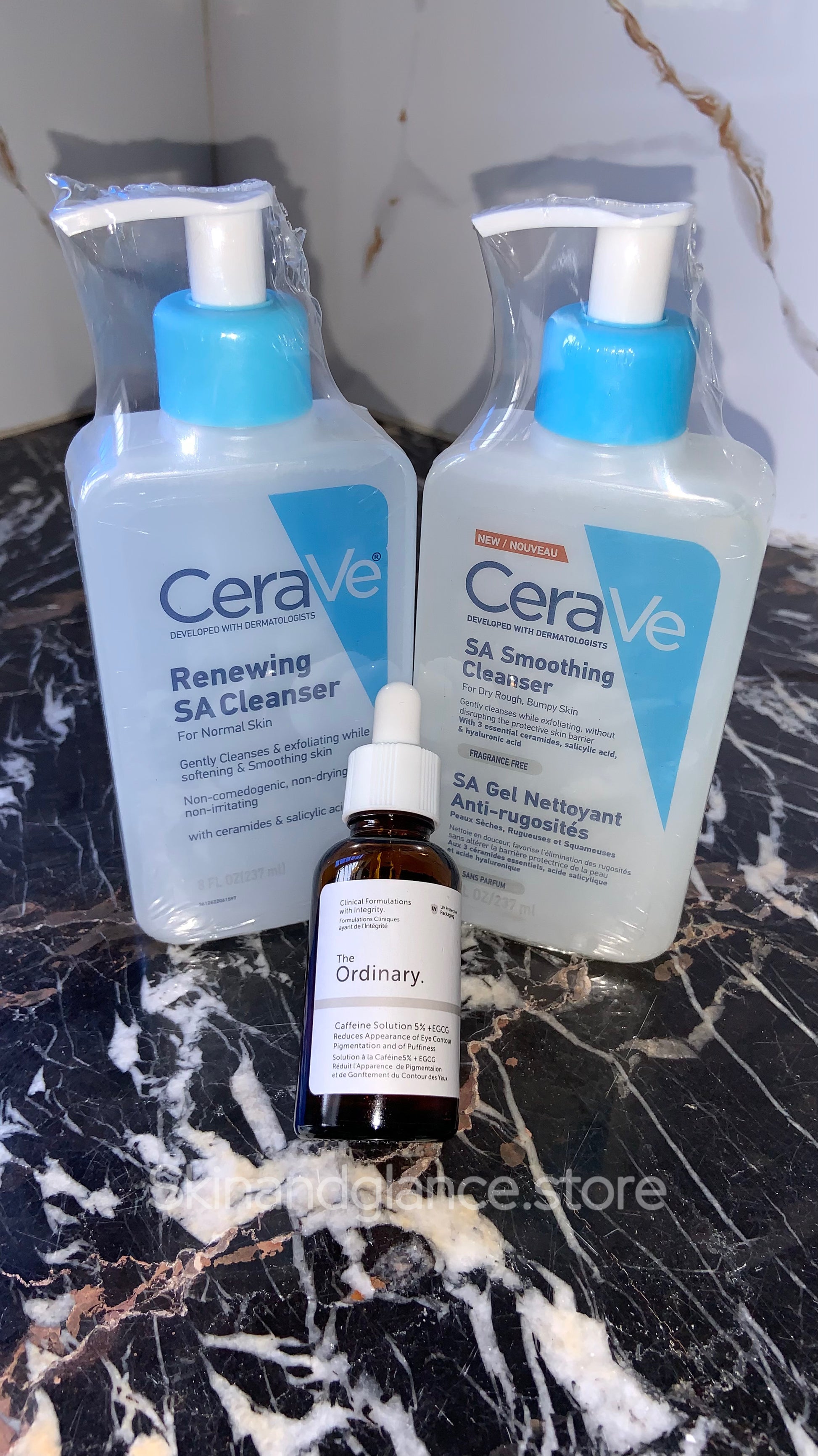 Deal Of 3 (Cerave Renewing SA Cleanser, CeraVe SA Smoothning Cleanser and The Ordinary Caffeine Solution 5% + EGCG)