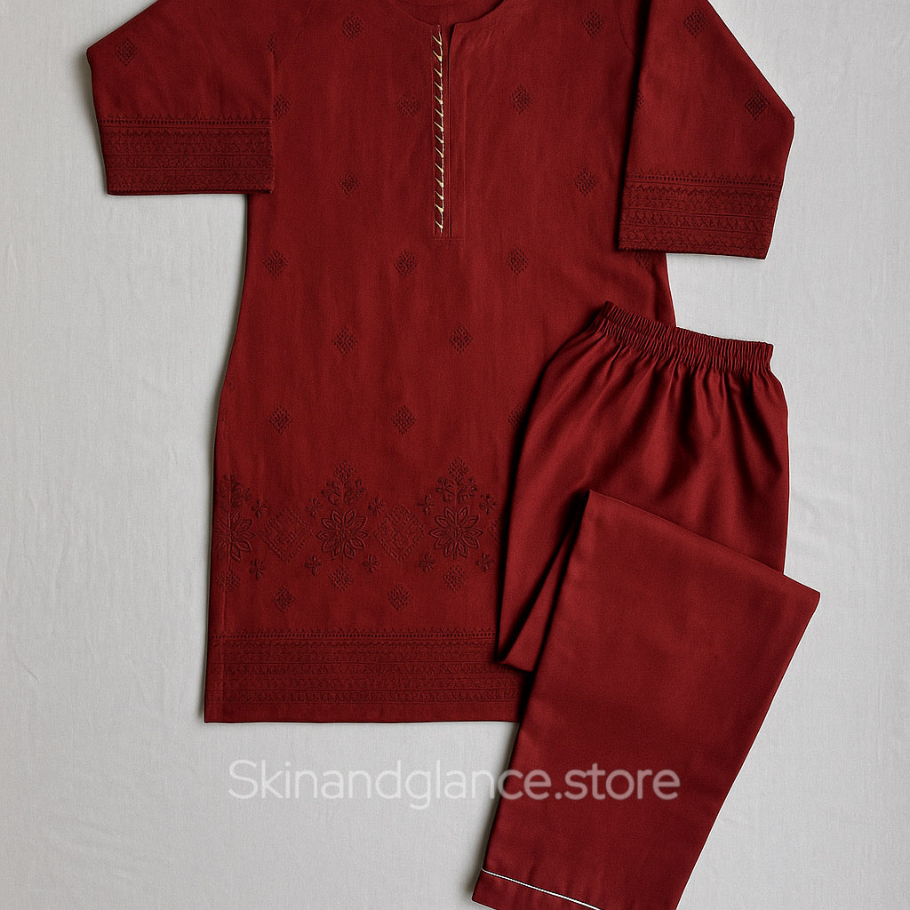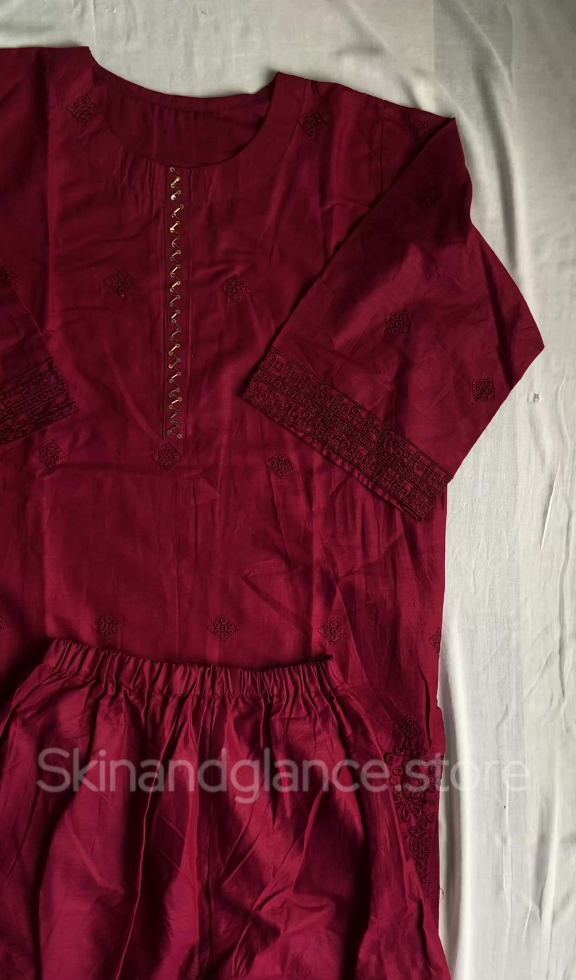 This deep maroon co-ord set is all about understated elegance — featuring subtle embroidery and a flawless silhouette that speaks volumes without saying a word. Perfect for effortless festive or everyday glam. ✨🌺