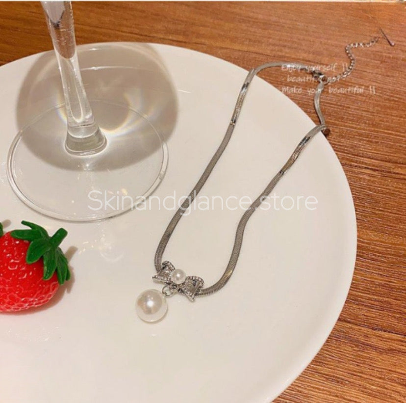 Elegant Korean Know Shape Pearl Pendent | Knot Pearl Necklace