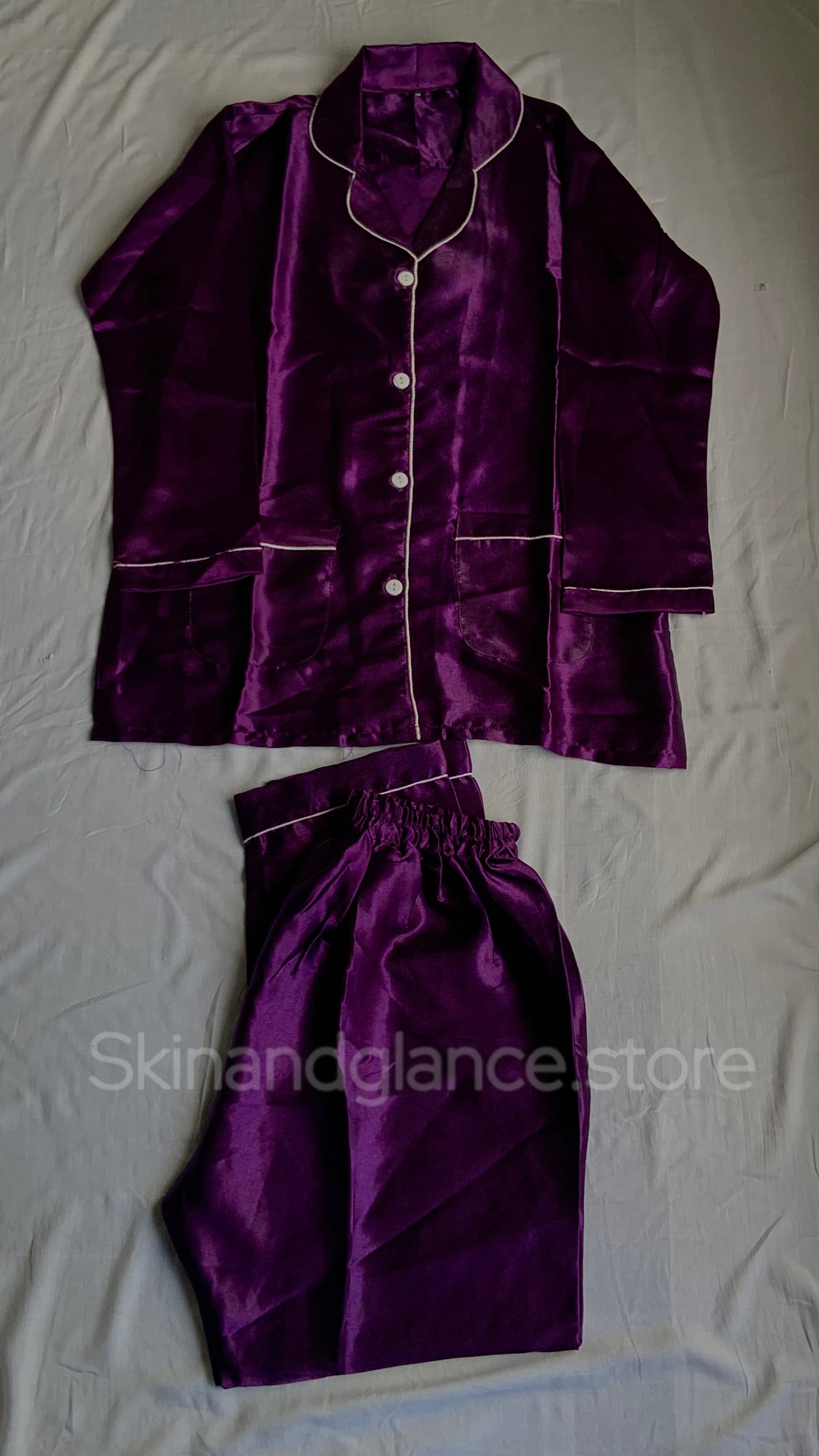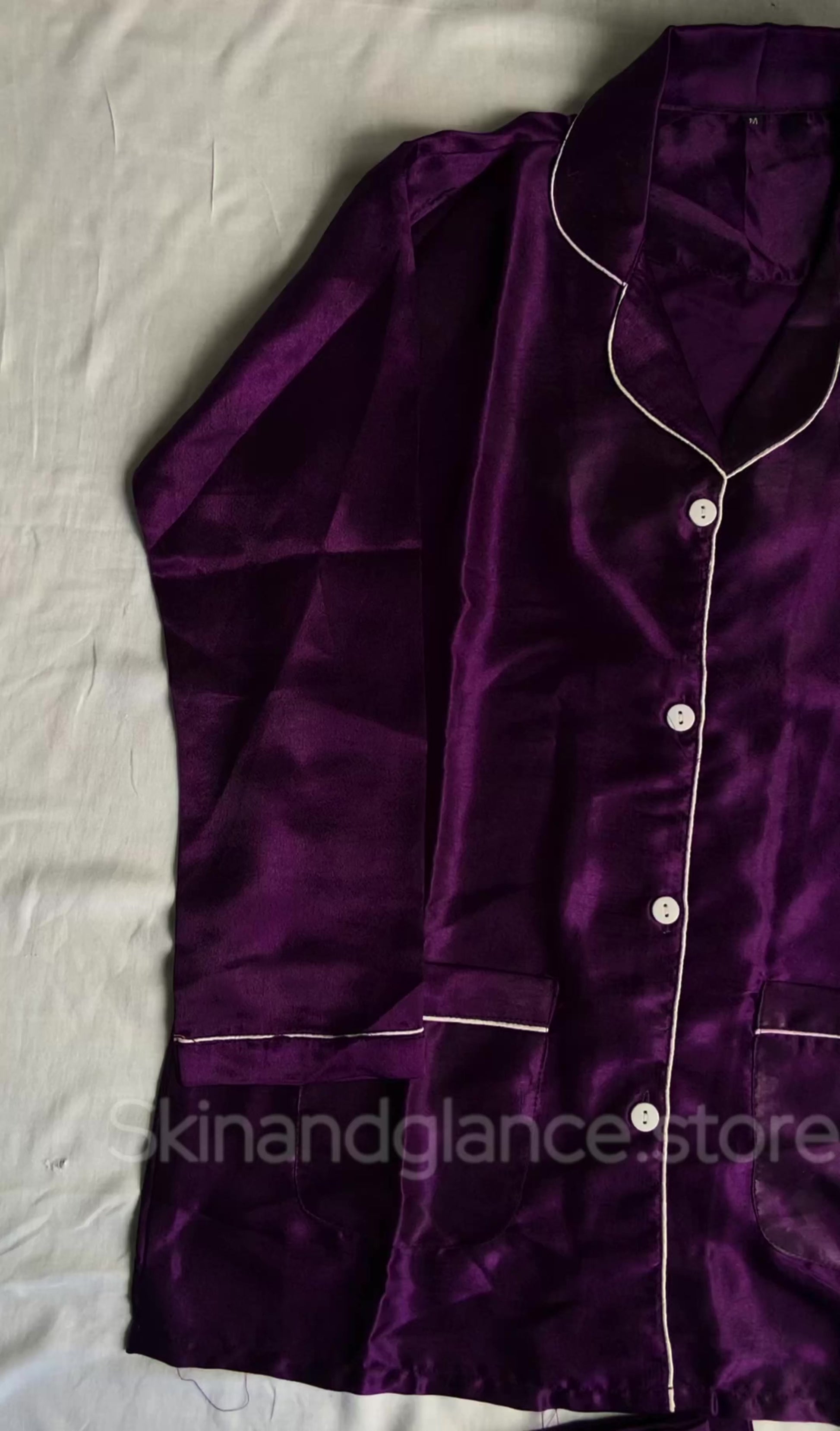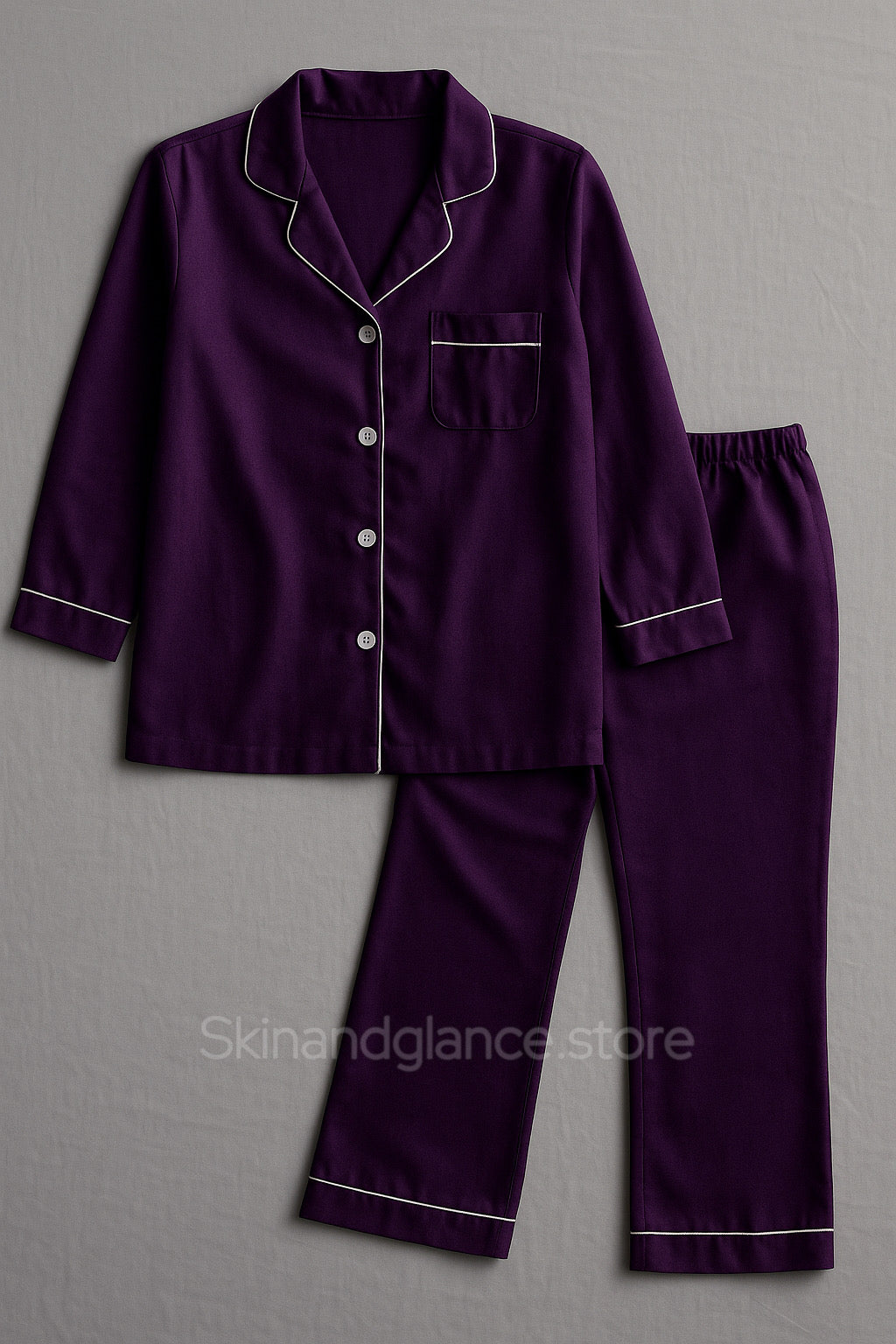Unwind in style with this elegant plum pajama set β soft, sleek, and trimmed to perfection. Because your nightwear should feel as good as it looks. πβ¨