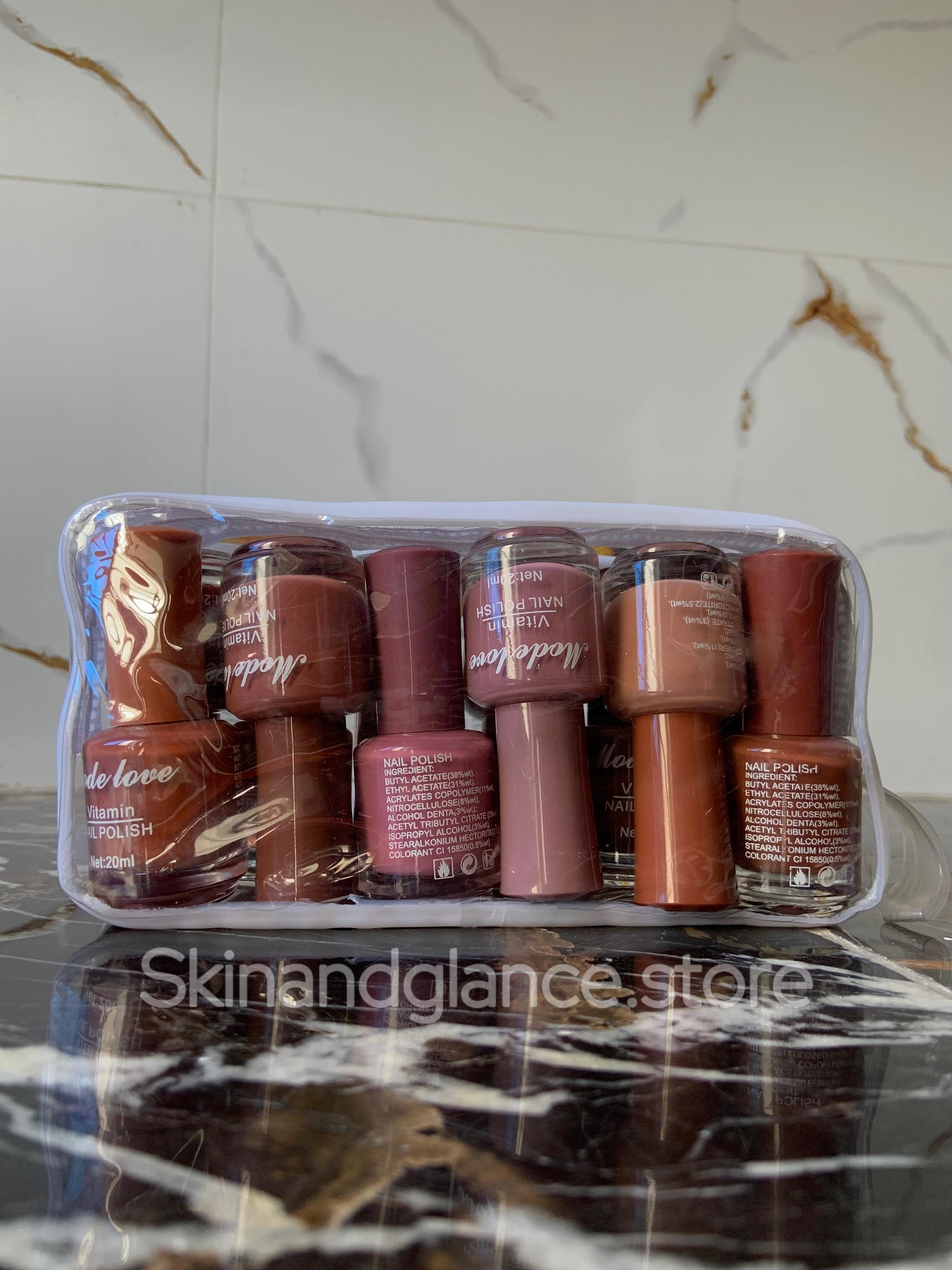 Nude nail paints set of 12 with Pouch included✨ – Long-Lasting, High-Shine Colors