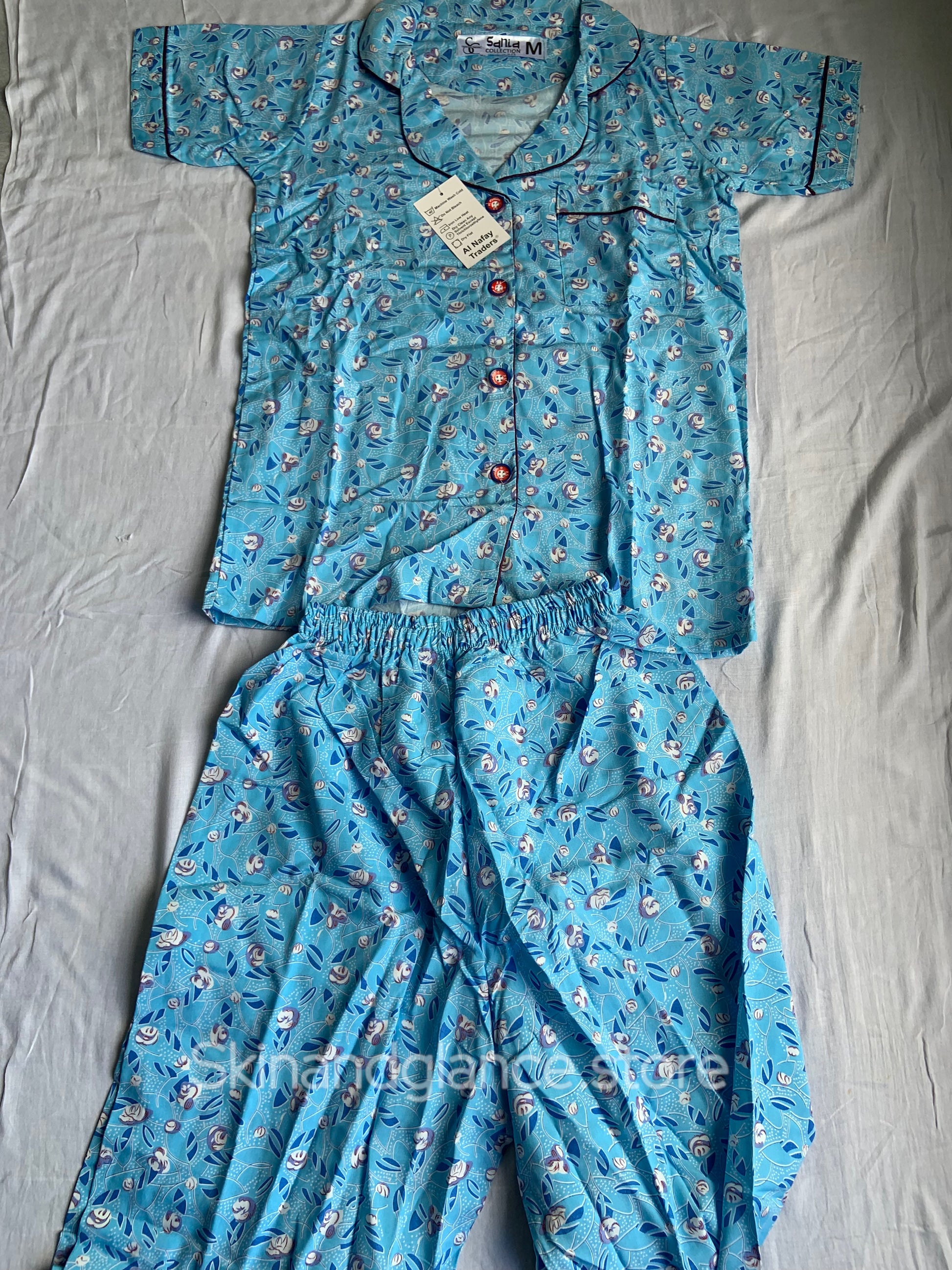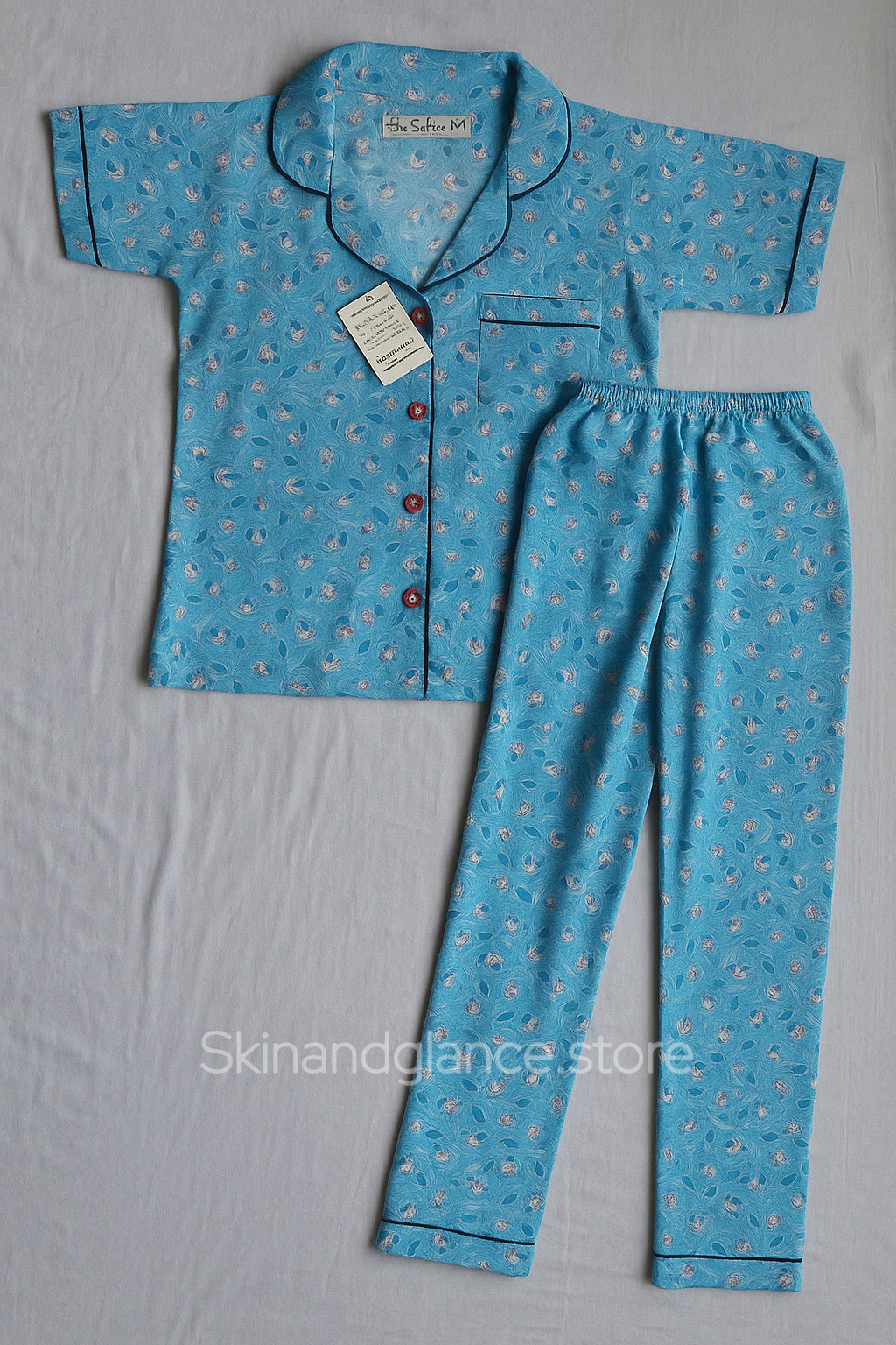 Drift into comfort with this sky-blue pajama set featuring the cutest all-over print and contrast piping. Soft, breathable, and made for your best sleep yet! βοΈπ